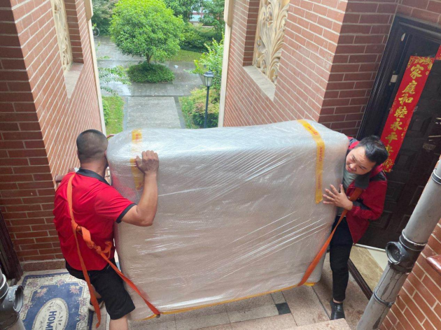 ②鋼琴在搬運(yùn)時(shí)一定要均勻受力,由于鋼琴的體積較大,因此通常需要3-4個(gè)男士合力將鋼琴平移搬運(yùn)至貨車上。